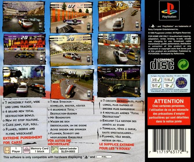 Développé par Reflections Interactive et édité par Psygnosis, Destruction Derby 2 est l’évolution du jeu original, proposant des pistes plus larges, des obstacles, des sauts et une physique de dégâts plus riche. En plus des courses classiques, il inclut des modes comme Wrecking Racing, où il ne s’agit pas seulement d’être le plus rapide, mais de causer le plus de dégâts possible, et des arènes où la survie compte autant que la vitesse.